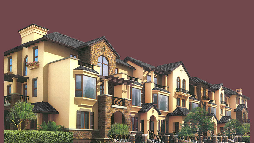 “嘉龍花園”項(xiàng)目在小區(qū)中心水景處匠心獨(dú)韻的規(guī)劃了四棟單體Villa,坐落在由水景庭院、木制小品、噴泉雕塑、鵝卵石小徑、各類名貴植物圍合而成的自然環(huán)境之中,設(shè)計(jì)時(shí)追求更加自由舒適的空間關(guān)系,不對(duì)稱設(shè)計(jì)、外廊設(shè)計(jì)、親水綠廊、前庭后院,強(qiáng)調(diào)自然景觀、空氣陽(yáng)光、運(yùn)動(dòng)流水。規(guī)劃設(shè)計(jì)為新古典主義(Neoclassical)建筑風(fēng)格,外觀裝飾豪華,立面為一排雙層柱廊,氣度尊貴;墻面、窗戶、窗頂、屋檐等處均有精美的雕花裝飾,盡顯豪華氣派;冬日處兩根厚實(shí)的古典圓柱所支撐的高挑門廊,啟示著主人卓爾不凡的身價(jià)和豁達(dá)寬廣的心胸。材質(zhì)和色彩選用淺灰色毛面花崗石為基座,英紅色、白色高檔外墻涂料為墻身,屋頂則是作為別墅專用的鐵灰色飾面瓦,整棟別墅流露出著自然而高貴的色彩。